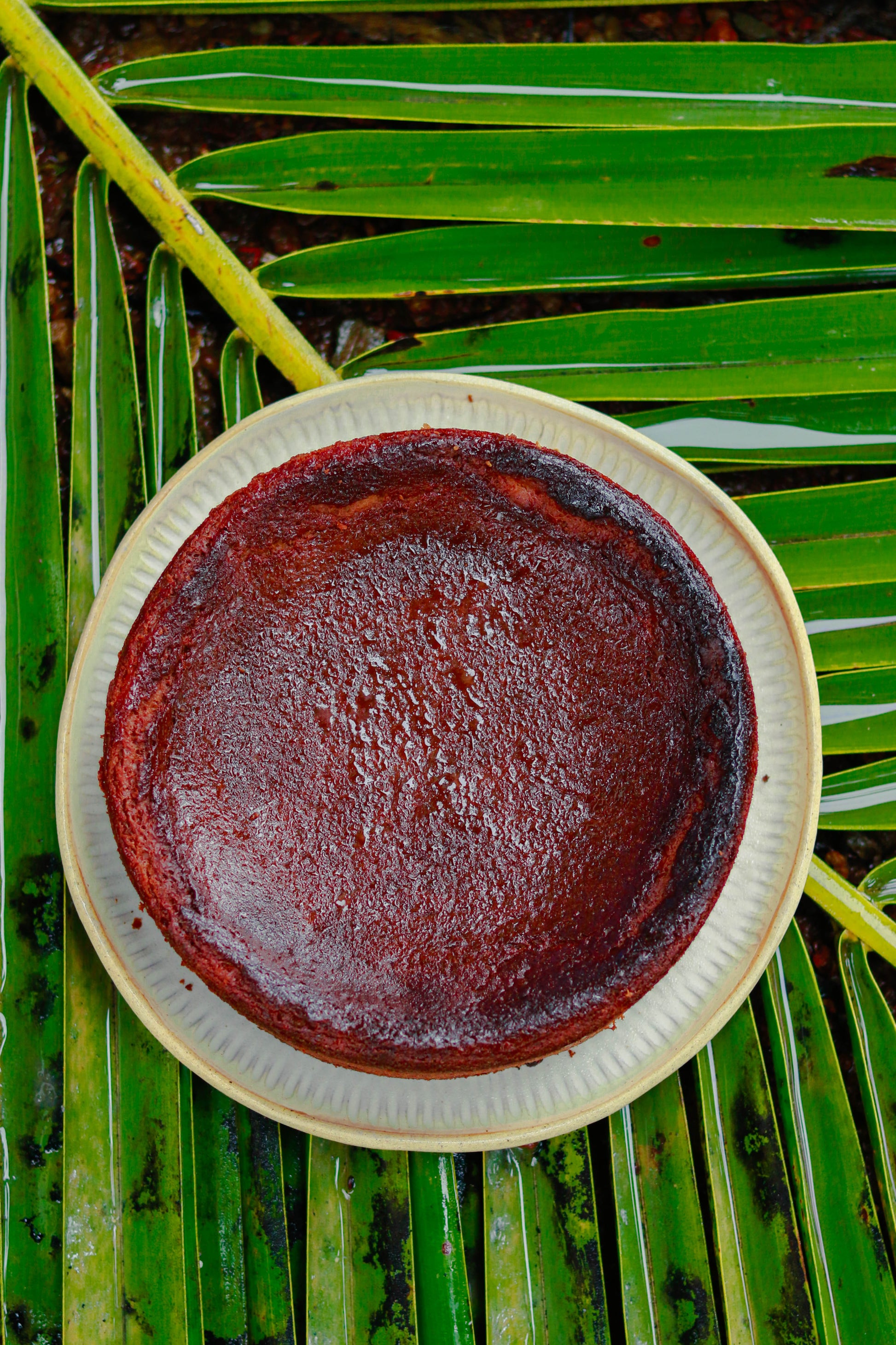 - Burnt Basque cheesecake with pineapple passion fruit compote